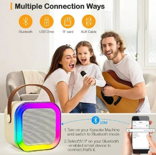 MINI PARLANTE KARAOKE CON 2 MICROFONOS DE REGALO